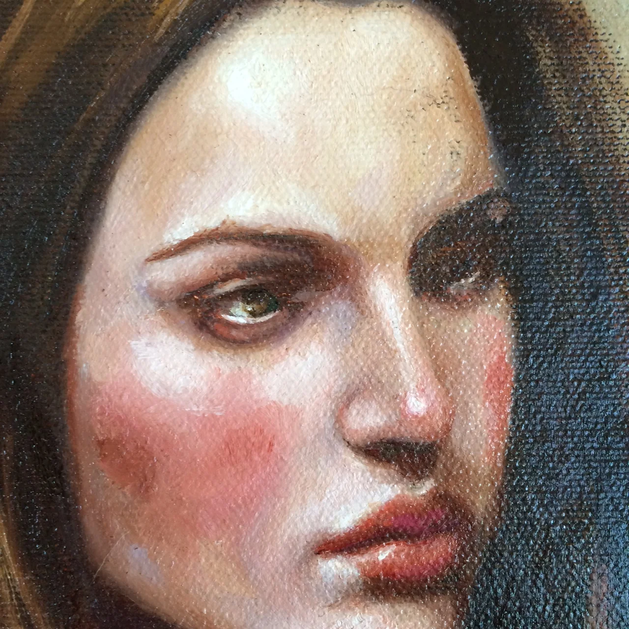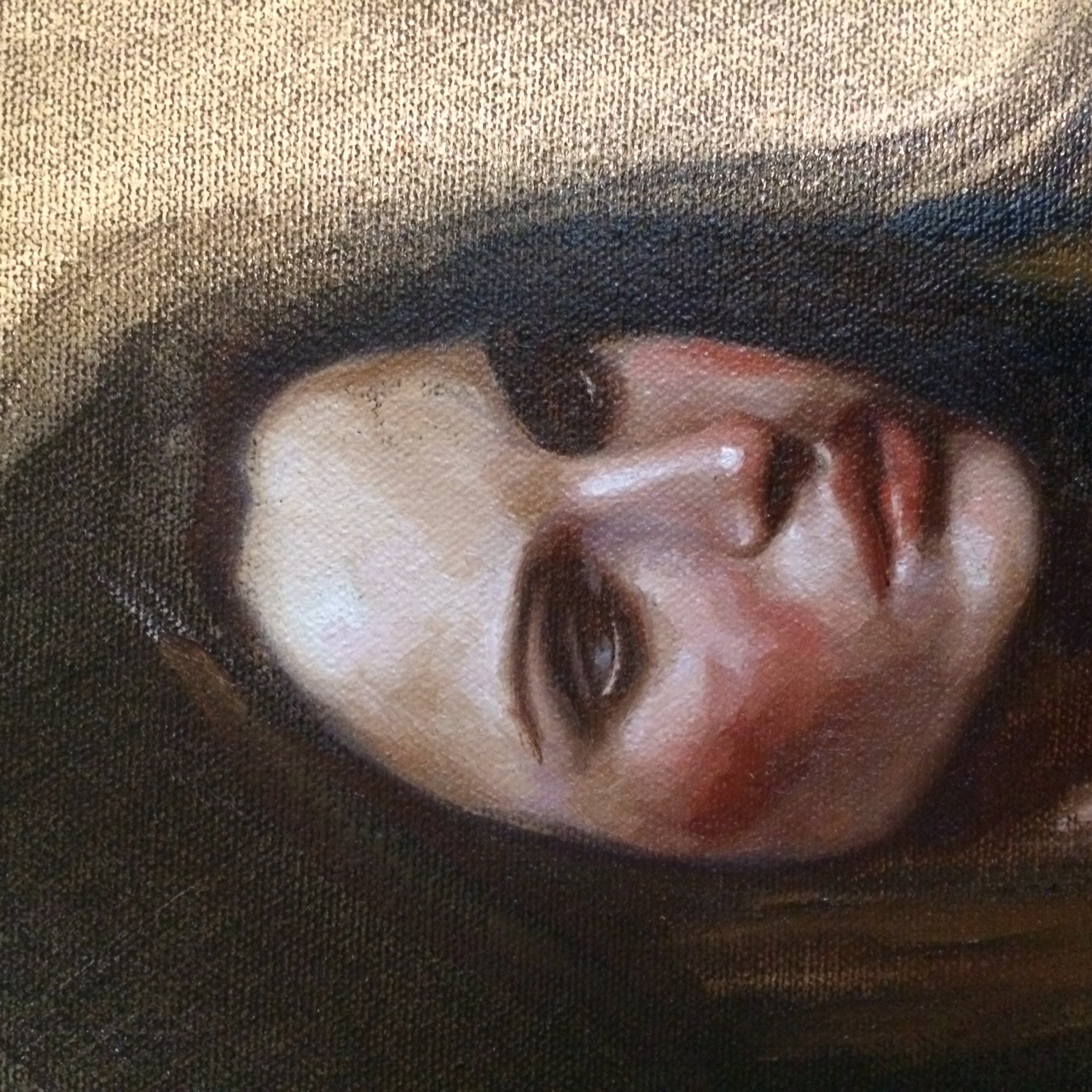 Some quick photos of painting in progress, I love the result of the thick, juicy paint that the indian cotton forces me to use. I have some of my favourite Odd Nerdrum books beside me to give me courage ...